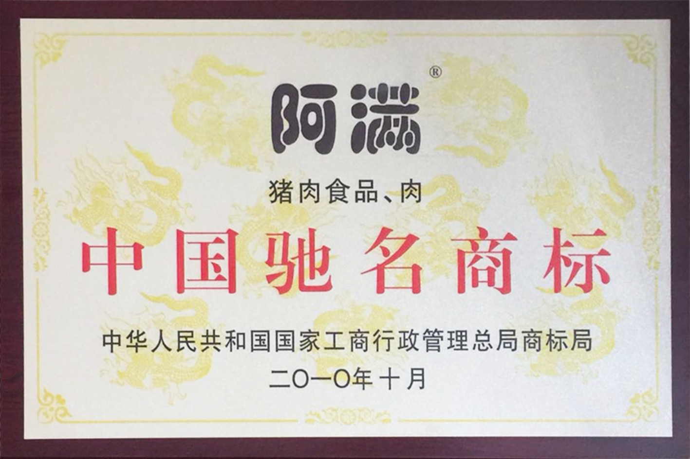 阿滿食品被國家工商總局評定為“中國馳名商標”